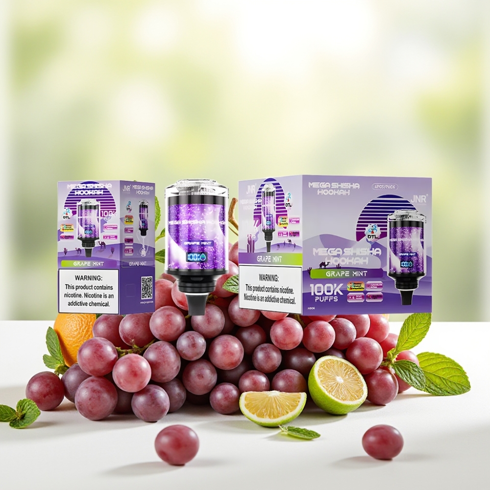 JNR Mega Shisha Hookah 100K Настільна сумісність Виноград М’ята 100000 затяжок 60мл 2200мАг