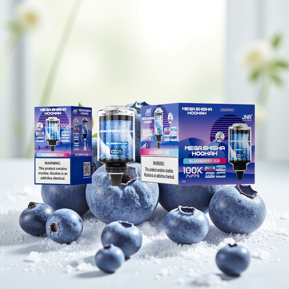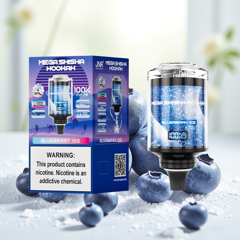 JNR Mega Shisha Hookah 100K Настільна сумісність Чорниця Лід 60мл 2200мАг Тип-C